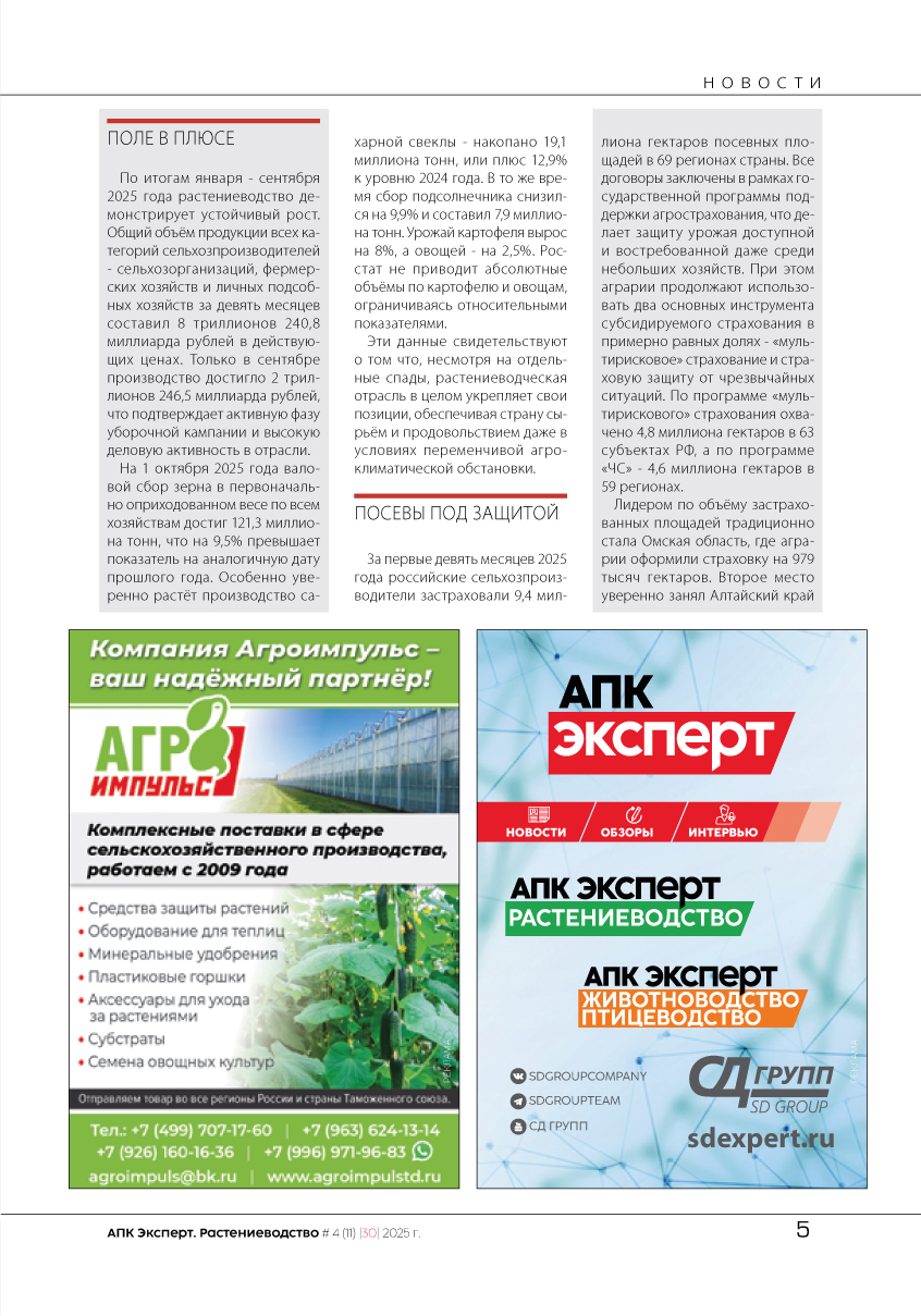 Архив Журнал «АПК Эксперт. Растениеводство»